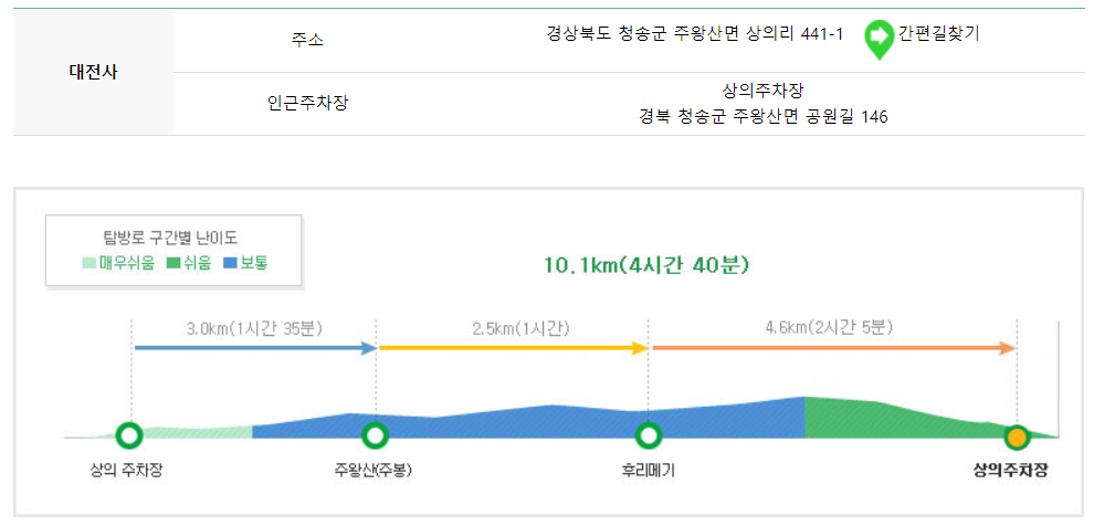 주봉 코스는 대전사에서 출발 해 주왕산 주봉을 오른 후 칼등고개와 후리메기, 용추폭포를 거쳐 다시 상의주차장으로 하산하는 코스로 주왕산 코스 중 가장 사람들이 많이 찾습니다. 전체적으로 경사가 급하지 않고 울창한 산림 속에서 산책하듯 힐링하면서 걸을 수 있는 잘 정리된 평이한 코스입니다.